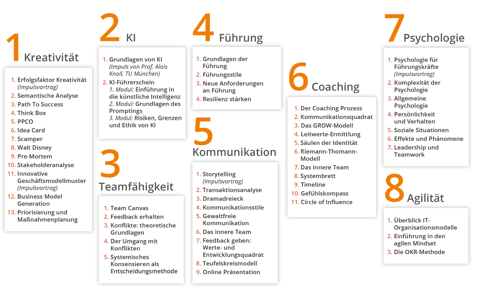 Wir sind zutiefst davon überzeugt, dass bestimmte Kompetenzen von entscheidender Bedeutung für die zukünftige Arbeitswelt sind, sowohl für Angestellte als auch für Führungskräfte, die sich in Unternehmen der Zukunft behaupten wollen. MyCompanyCampus bietet eine Vielzahl von Vorträgen und Tutorials, die das Wissen effizient und zielgerichtet vermitteln und konkrete Beispiele für die praktische Anwendung liefern.